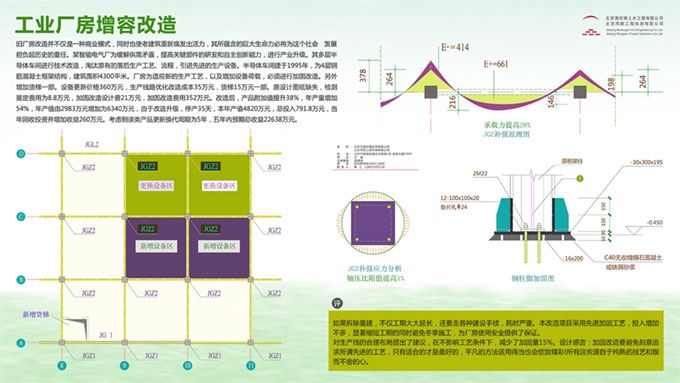 如果拆除重建,不仅工期大大延长,还要走各种建设手续耗时严重,本改造项目采用先进加固工艺,投入增加不多,显著缩短工期的同时避免冬季施工,为厂房使用安全提供了保证