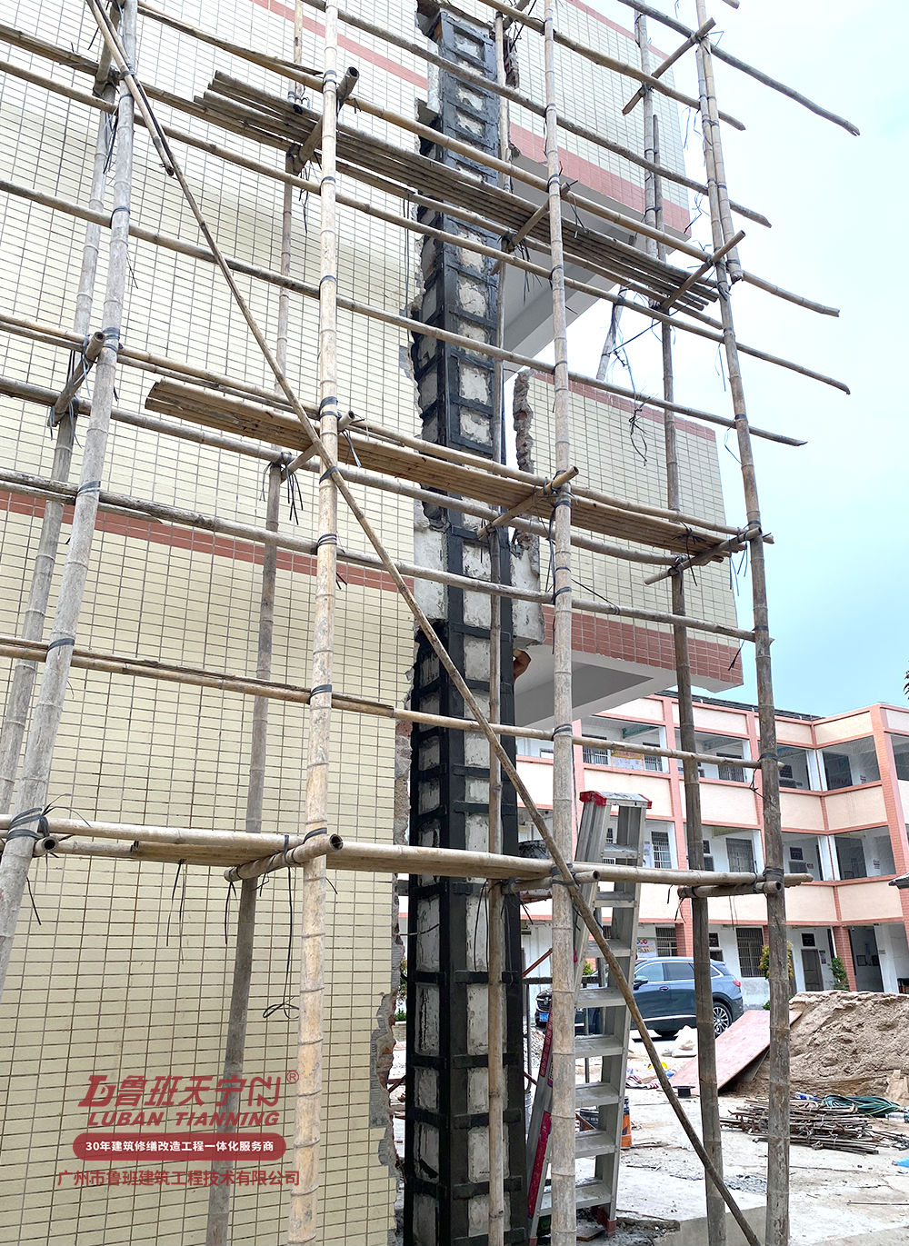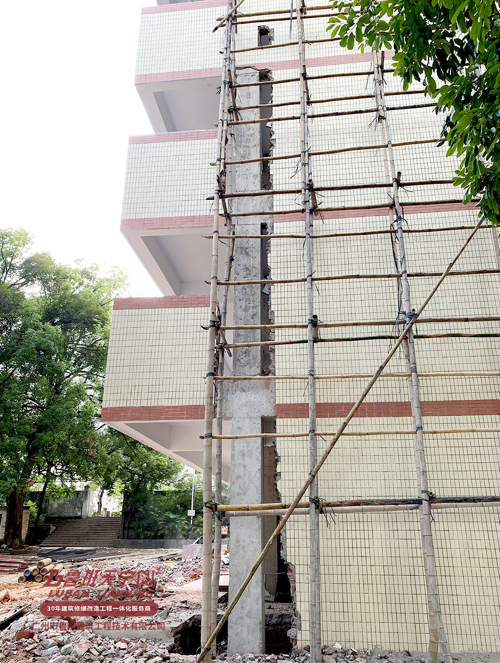 浏览量:953 发布时间:2023.09.06新近,由广州市鲁班建筑工程技术有限公司承建的某校宿舍楼加固工程顺利完工。该栋建筑为5层楼,鲁班公司对该宿舍楼的50余条梁和柱分别采取了梁粘贴碳纤维布加固和柱外包钢加固,以提高构件的承载能力和整体受力性能。